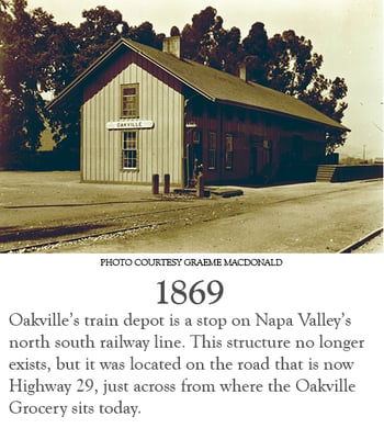 When America’s economic conditions improved in the late 1870’s, the idea that Napa Valley was wine country caught on and the Oakville area was transformed. Between 1878 and 1889 the little village along the tracks became the center of one of California’s most important wine districts, part of a valley whose honors in wine would become legendary.
